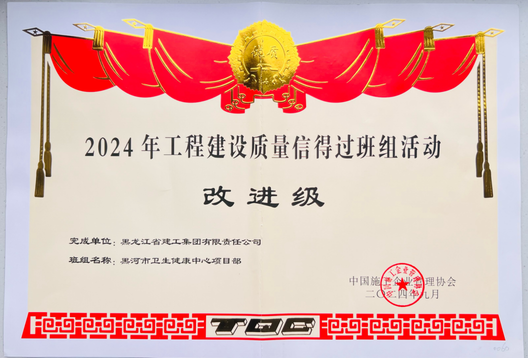 黑河市衛(wèi)生健康中心項目部2024年工程建設(shè)質(zhì)量信得過班組活動改進(jìn)級