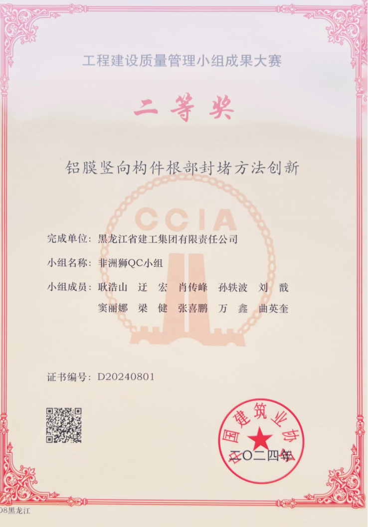 工程建設(shè)質(zhì)量管理小組成果大賽二等獎