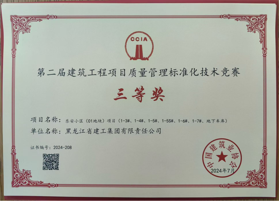 第二屆建筑工程項目質(zhì)量管理標(biāo)準(zhǔn)化技術(shù)競賽三等獎